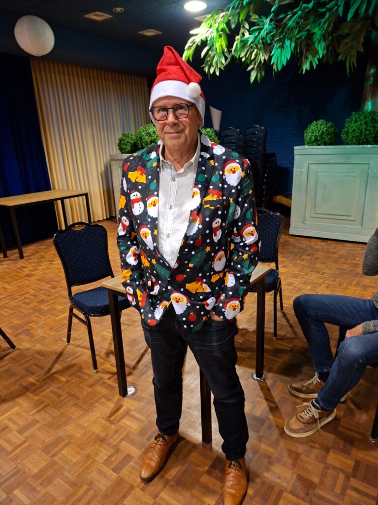 Hans van der werken reikte de prijzen uit in een mooi kerstpak. Ook de jokerdames maken er elke woensdagmiddag een leuke wedstrijd van.